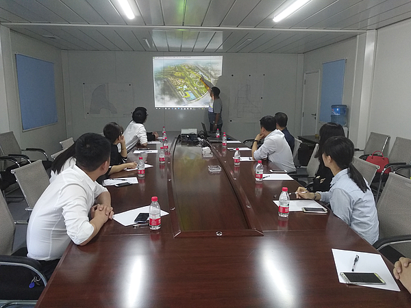 在意景園林項目部,全體員工認真學習了新渭沙濕地公園設計理念、功能定位及雨水組織流程,現場管理人員介紹了雨污水處理設施、景觀小品布局及植物配置情況。會后,實地踏勘了解海綿設施施工組織及工藝流程,雙方針對項目建設過程中遇到的各項技術問題進行深入探討。