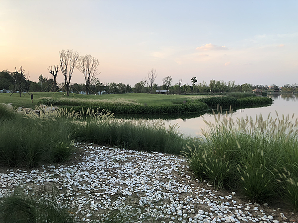 本次調(diào)研,海綿城市技術中心對園區(qū)植物搭配、水系設計、功能小品、生態(tài)駁岸、空間營造等造園手法進行學習,重點學習園區(qū)內(nèi)透水鋪裝、礫石排水溝、梯級雨水調(diào)蓄凈化設施、下凹式綠地、生態(tài)樹池等海綿城市典型設施建設手法。