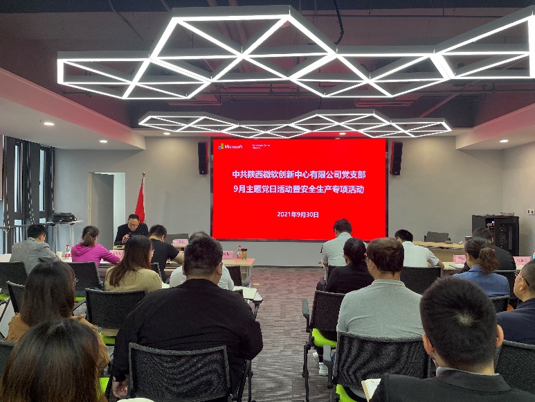 為切實筑牢安全生產防線、消除事故隱患,增強公司全體黨員干部的安全意識和應急救援、自救能力,進一步增強黨員的責任感、使命感,爭當公司安全保障工作的“先鋒”。2021年9月30日上午,陜西微軟創新中心有限公司黨支部組織召開“不忘初心筑牢底線,安全生產黨員先行”主題黨日活動,陜西微軟創新中心有限公司、陜西灃西科創發展有限公司全體黨員干部、入駐企業與項目合作單位代表參會。