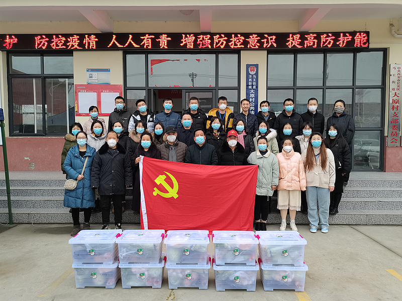 在大原村村委會(huì)門前,20余名黨員、團(tuán)員集體看望慰問防疫工作者,隨后全體黨員、團(tuán)員分兩組進(jìn)村入戶,詢問了解群眾生活需求、年貨置辦情況,傾聽群眾所思所想所盼,解決群眾大事小事急事。