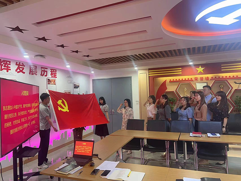 全體黨員在支部書記的帶領下,面對鮮紅的黨旗,高舉右拳,莊嚴宣誓。通過重溫入黨誓詞,回顧我們入黨時的莊嚴承諾,提醒我們所肩負的神圣使命和責任,強化對黨忠誠意識,不斷激發新擔當新作為。