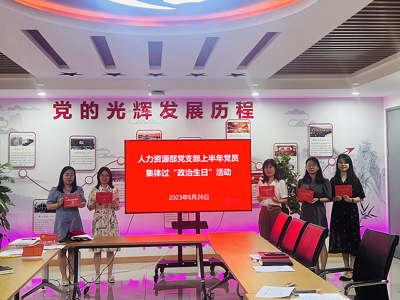 “政治生日”是共產黨人的信仰名片。人力資源部黨支部為上半年入黨的6名黨員過了一次莊重嚴肅又充滿感情的“政治生日”。支部書記代表黨支部贈送“政治生日賀卡”并合影留念。政治生日的黨員代表分享心得,要不忘初心,牢記使命,黨員不僅是一份榮譽、一份自豪,更是一份擔當。