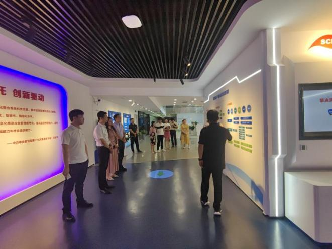參觀交流、互促互進話發展。秦創原消防產業加速基地是依托秦創原創新驅動平臺科創資源和陜西省科教優勢,聯合高校、科研院所,引入消防企業,共同打造集火災感知預警、自動防控、消防裝備、應急救援產業鏈從研發到應用的一體化消防產業孵化加速平臺。隨著相關負責同志對公司戰略規劃、基地建設中長期計劃等方面的詳細介紹,一幅關于企業發展的藍圖在每個人的眼前展開,信息化賦能區域發展的種子自此深植。