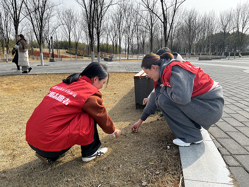 講解結束后,黨員干部以身作則、不怕臟、不怕累,仔細清理了灃柳路公園里草叢、衛生死角等地的垃圾,并向路過的群眾進行宣傳教育,呼吁共同維護公園環境。