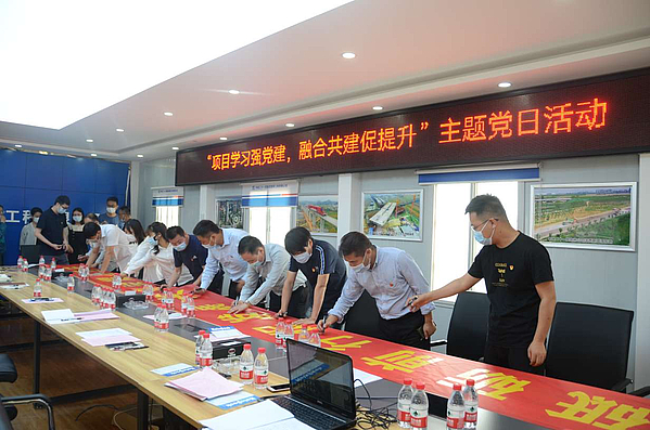 5月19日上午,灃西集團發展經營部黨支部、市政工程項目管理部黨支部與中鐵二十一局集團路橋公司西咸片區項目部黨支部以“項目學習強黨建,融合共建促提升”為主題聯合開展黨日活動,三個支部二十余名黨員同志參與學習交流。