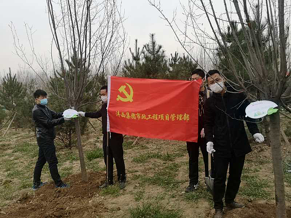 3月12日,投資公司黨支部聯合團支部組織全體黨員、入黨積極分子、團員及群眾前往新城灃河灃景路泵站項目現場開展以“同植黨員先鋒林 共護生態好家園”為主題的志愿植樹活動暨黨支部2020年第三期黨建帶群團活動。