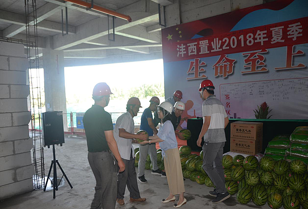 近期持續(xù)高溫,又正逢施工高峰期,為落實(shí)公司以人為本的管理理念,確保一線施工人員暑期施工安全,7月25日上午,陜西省灃西置業(yè)有限公司開展2018年夏季“送清涼、促生產(chǎn)”活動(dòng),為公司在建項(xiàng)目送去防暑降溫品,把對(duì)施工人員的關(guān)心關(guān)懷送到項(xiàng)目一線。