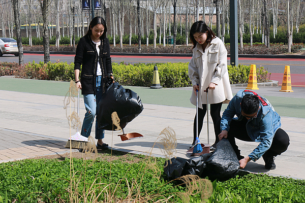 3月22日上午,投資公司黨支部開展“垃圾不落地、灃西更美麗”學雷鋒志愿活動。