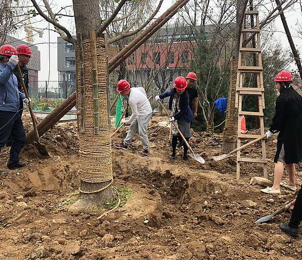 植樹現(xiàn)場,在專業(yè)技術(shù)人員指導(dǎo)下,大家齊心協(xié)力,互相配合,揮鍬鏟土、填入樹坑、堆起圍堰、及時澆水,接連種下丁香、銀杏、石楠、紅楓等樹苗40余株。經(jīng)過一番熱火朝天的勞動,一株株種好的苗木錯落有致、迎風(fēng)挺立,為金黃的秋天帶來繽紛色彩,為美麗的云谷再添新綠。