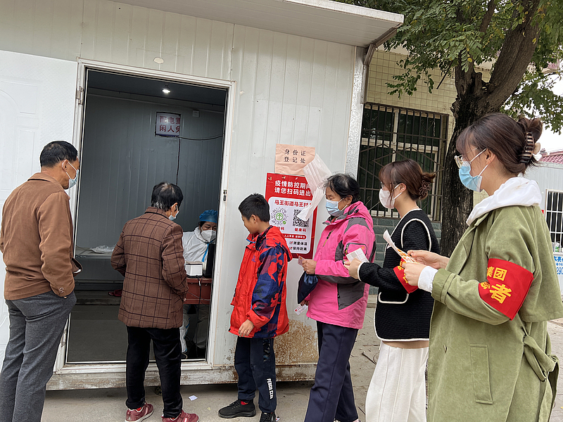 在核酸檢測過程中,志愿者們按照統一安排,提早到達馬王村采集點工作崗位,布置核酸檢測場地,按照責任分工迅速進入工作狀態,維持現場秩序、提醒群眾戴好口罩、引導群眾有序排隊,用耐心和微笑堅守著崗位,在一次又一次的掃碼和測溫中,主動當好防疫站線上的“螺絲釘”,彰顯青年志愿者的奉獻與擔當。