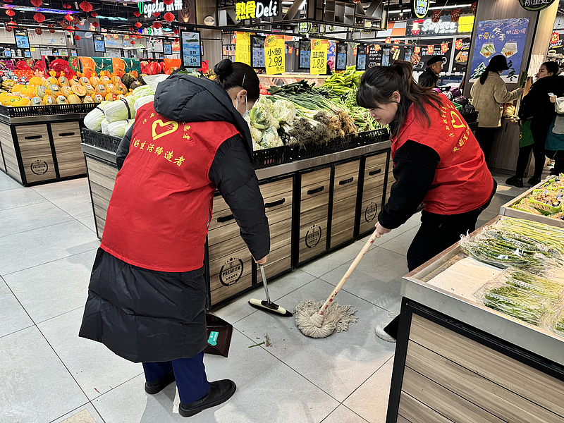 學雷鋒做公益,助推招商引資。青年志愿者們走進商鋪,助力全員招商,來到合作密切的宏聚客超市、大秦果果商鋪,做一些清潔衛生、陳列產品等力所能及的事,為商鋪運營增添一份力量,積極營造良好的營商環境。