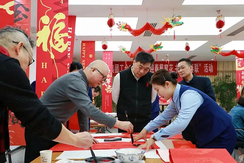 新春將至,為弘揚中華傳統文化,營造祥和歡樂的節日氛圍。本次活動邀請省書法家協會書法家、咸陽市民間藝術家協會老師和職工書法愛好者,現場為大家送去新春祝福。剪紙老師細致地為大家講解剪紙技巧,大家歡聚一堂,共同感受剪紙的樂趣,一剪一剪慢慢雕琢著“福”字和生肖“龍”,剪刀一起一落間紅色祝福灑落祥和。書法家鋪開紅卷,挽袖執筆,筆走龍蛇,潑墨揮毫。
