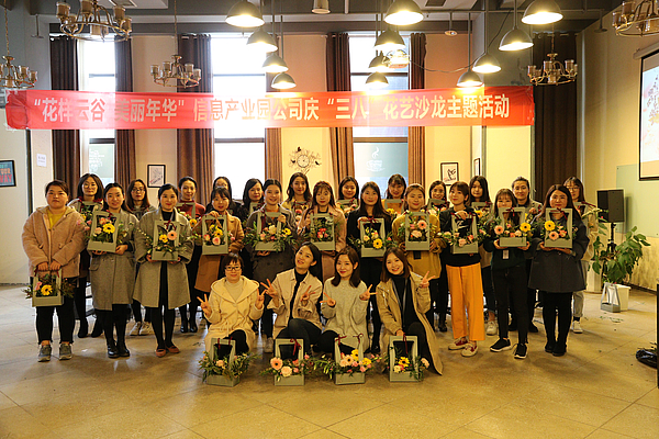 為慶祝“三八”國際勞動(dòng)?jì)D女節(jié),進(jìn)一步豐富女職工的精神生活,陶冶性情、提高藝術(shù)修養(yǎng),3月8日上午,信息產(chǎn)業(yè)園公司組織全體女職工開展了以“花樣云谷、美麗年華”為主題的“慶3·8”花藝沙龍主題活動(dòng)。
