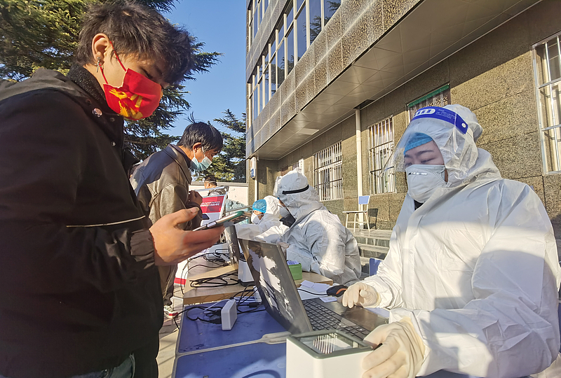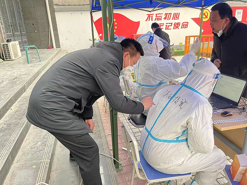 戰斗在防疫一線的他們,忙碌不停的身影辛苦得讓人心疼。配合開展核酸檢測工作,不只是簡單的掃碼和維持秩序。由于當地老年人、兒童數量較多,有的人不清楚檢測流程,有的人不會使用智能手機,有的人根本沒有手機……因此,檢測信息需要人工錄入、手機操作需要一對一指導、掃描一碼通需要專人幫助,這無疑帶來了巨大的工作量。“當嚴格地穿戴好一整套防護衣物,眼睛貼在屏幕上,笨拙地敲打鍵盤時,才真正體會到防疫人員的辛苦”“無數次地錄入、詢問、核對,人再多也不能遺漏任何信息”“防護服不透氣,中午穿上熱死,到了晚上凍死”這才是防疫人員的真實寫照。為了減少穿脫防護服的次數,大家水不敢喝,廁所不敢去……一天下來,“掃一碼通、戴好口罩、保持一米線間隔”的提示語說得人口干舌燥。“這些都不算啥”投資公司員工表示,“我們全程不敢離開,生怕有的人沒掃一碼通就做了檢測,有的人掃完一碼通后卻去了隔壁的采樣點。”也是這一群人,他們最開心的是在各方的努力下,現場檢測保障有力,人員分工科學有序,目標人員應檢盡檢。