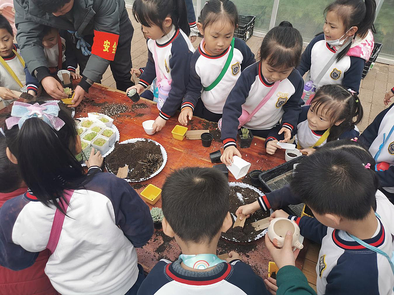 小記者們從播種綠色、互動游藝、素質拓展三個維度,開展了植樹體驗、多肉栽培、葫蘆彩繪、溫室參觀、園區游覽等系列研學活動,在感受寧靜、美好、淳樸自然田園風光的同時,通過親自體驗勞動,提高了大家的環保意識,踐行了“綠水青山就是金山銀山”理念。