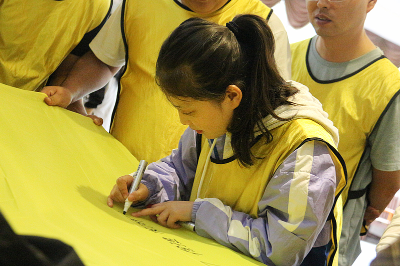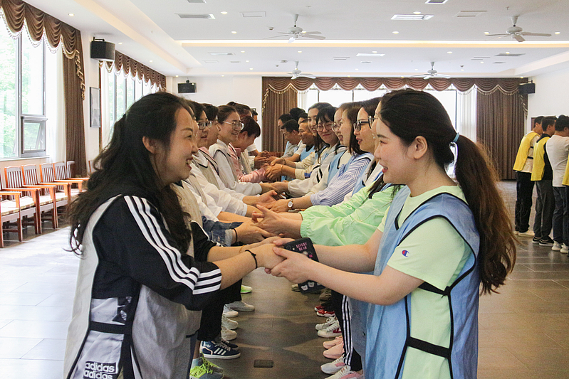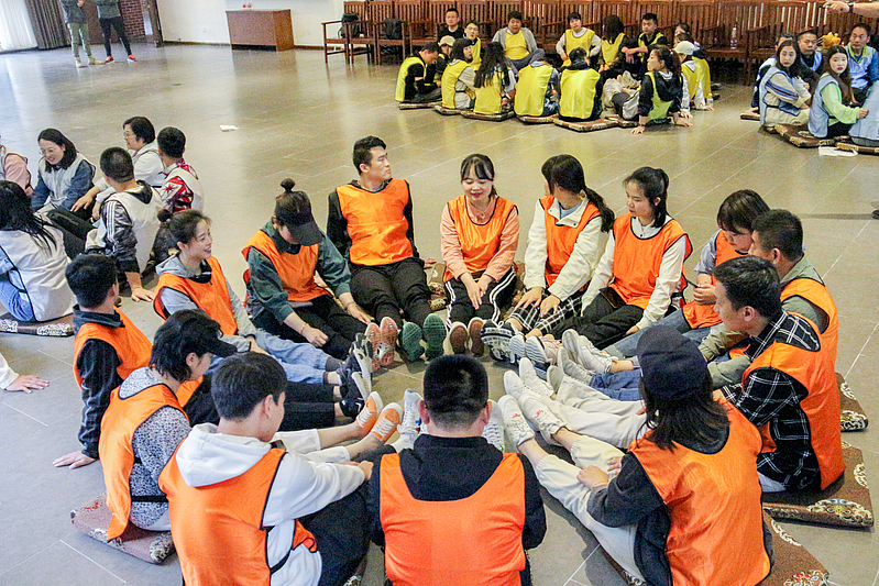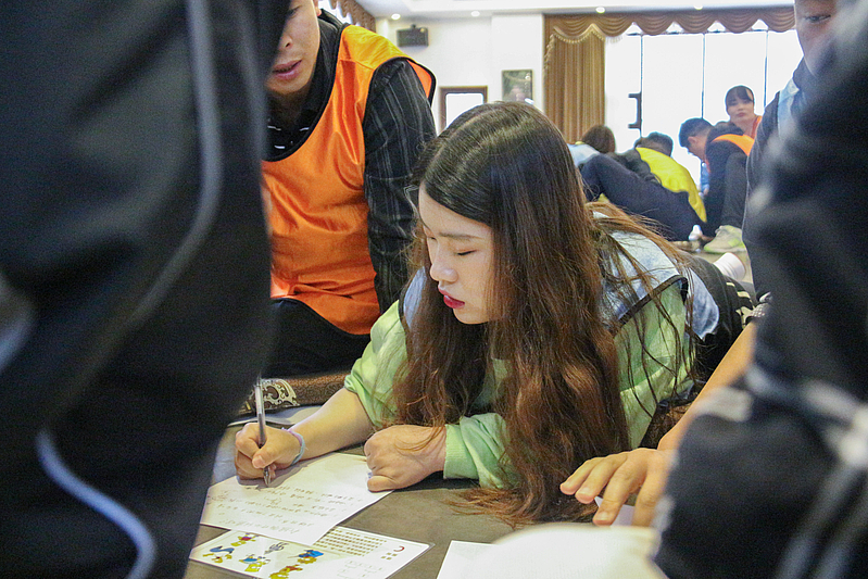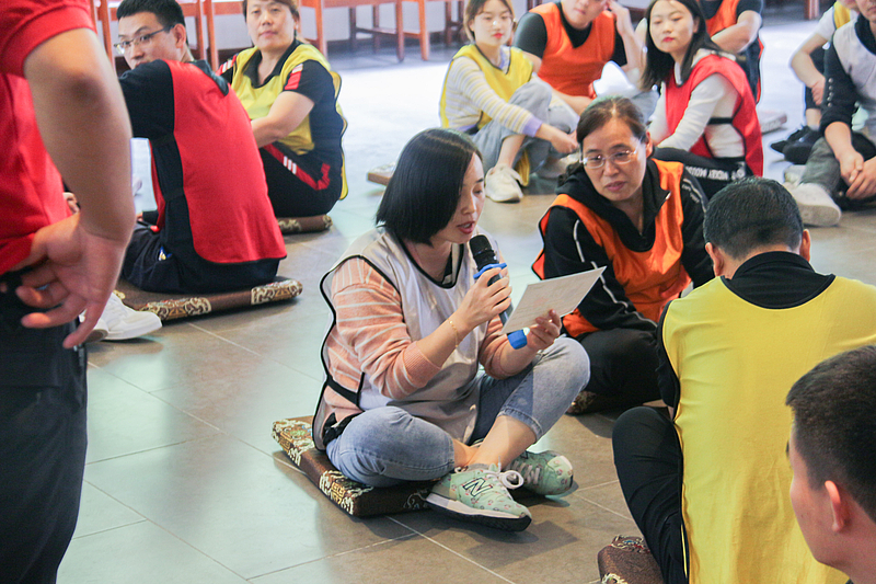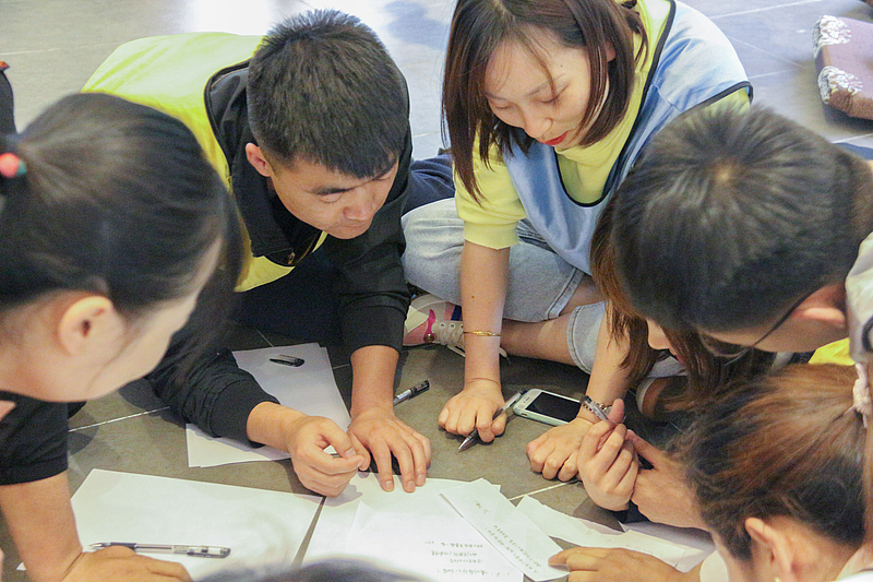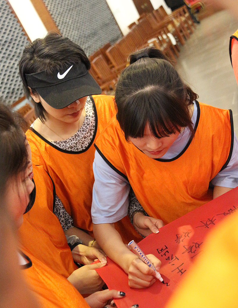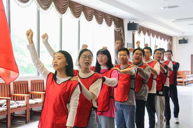 培訓(xùn)開營(yíng)儀式后,首先是破冰分組,隨后各項(xiàng)活動(dòng)循序漸進(jìn)。小分隊(duì)們領(lǐng)取了各自的專屬顏色馬甲,開始寫隊(duì)名、唱隊(duì)歌,“灃華正茂”隊(duì)、“西北狼”隊(duì)……各小分隊(duì)盡展風(fēng)采,嘹亮的口號(hào)聲此起彼伏。