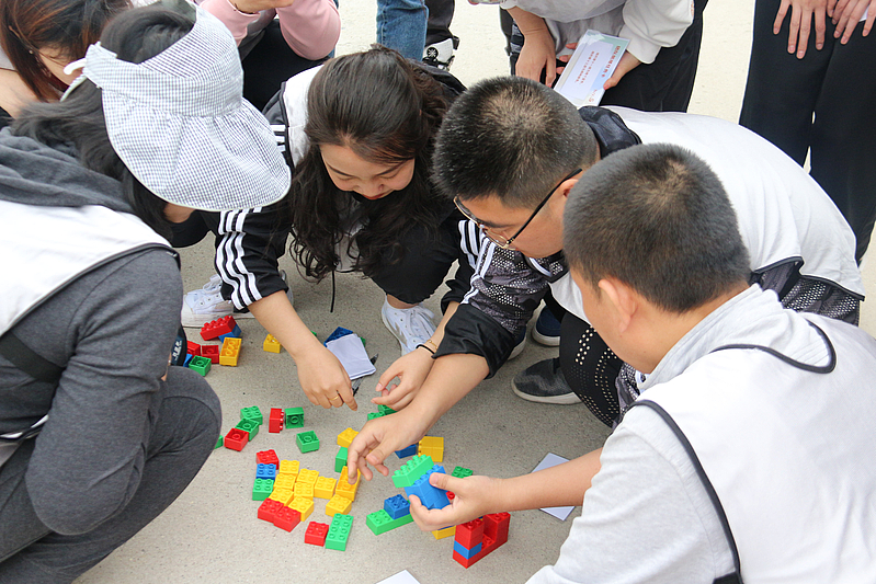 在“創(chuàng)新思維”和“啞人筑塔”活動(dòng)環(huán)節(jié)中,需要各隊(duì)員在規(guī)定的時(shí)間內(nèi)有序完成各項(xiàng)挑戰(zhàn)任務(wù)。計(jì)時(shí)開始后,每支隊(duì)伍都全身心投入活動(dòng)中,小分隊(duì)間的合作也更加得心應(yīng)手。夏風(fēng)輕拂,大家的興致也愈發(fā)高漲,不一會(huì)兒就有隊(duì)員示意教練已完成任務(wù)。