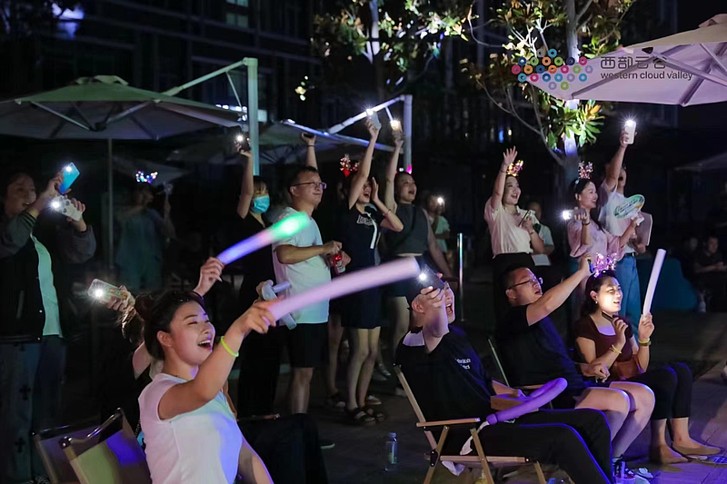 傍晚的西部云谷二期,滿是歡聲笑語,聲浪一波接一波,場面十分火爆,炎熱的天氣也阻擋不了到場觀眾的滿懷熱情。伴隨動感的音樂,燈光交織輝映,大家揮舞著熒光棒,狂掀激情與音浪交融的視聽盛宴。