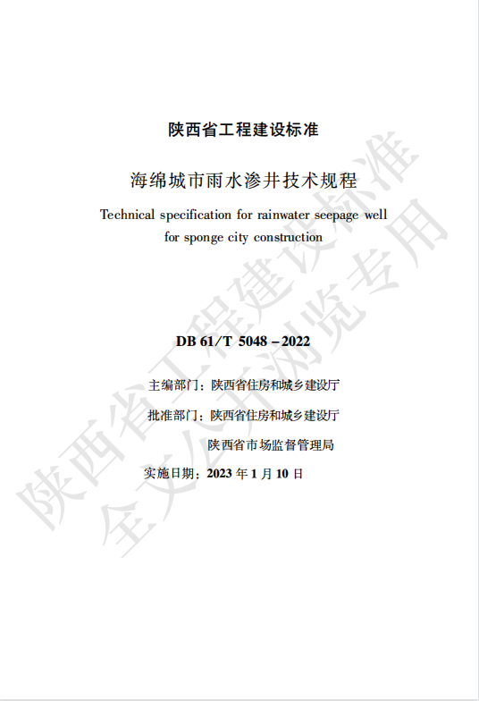 近日,由灃西集團(tuán)海綿城市技術(shù)公司聯(lián)合陜西省城鄉(xiāng)規(guī)劃設(shè)計(jì)研究院主編的《海綿城市雨水滲井技術(shù)規(guī)程》(DB61/T 5048-2022)《海綿城市建設(shè)項(xiàng)目評價(jià)標(biāo)準(zhǔn)》(DB61/T 5047-2022)2項(xiàng)省級地方標(biāo)準(zhǔn)批準(zhǔn)發(fā)布,目前已正式實(shí)施。