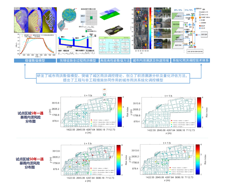 該科研成果結合新時期國家城鎮內澇防治重大需求,瞄準內澇風險模擬評估與雨洪調控技術領域關鍵科學問題,通過研究攻關,結合西咸新區灃西新城、寧夏固原和甘肅慶陽等國家海綿城市試點城市建設實踐,研發城市雨洪過程高效高精度數值模型,較好解決了復雜降雨過程、復雜下墊面、復雜排水系統條件下的城市雨洪模擬計算精度效率不高的問題,突破城區雨洪調控理論,創立積澇溯源分析及量化評估方法,提出了“灰綠耦合”工程與非工程措施協同作用的城市雨洪系統化調控模式。最終形成了一套具有完全自主知識產權的城市雨洪過程高效高分辨數值模型模擬與調控關鍵技術,可為城市排水防澇規劃、工程設計、內澇風險評估及防災減災預警預報提供有力支撐,成果整體達到國際先進水平。
