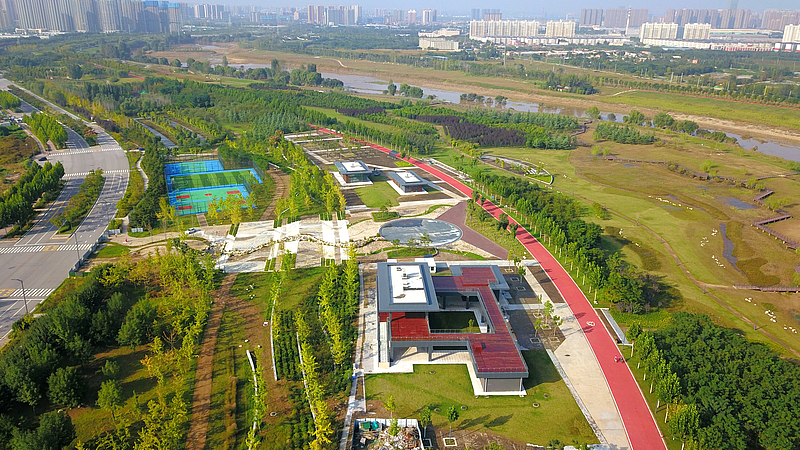 灃河綠道驛站項目位于灃河西岸沿線,南起新城邊界、北至橫一路。各單體通過錯位、圍合等手法組合成特色鮮明的驛站服務建筑群,結合中國傳統建筑審美和現代簡約設計,讓建筑風格與綠地景觀有機融合,使驛站成為灃河景觀中一道靚麗的風景線。項目投用后將為群眾提供多樣公共服務,不斷提升群眾游覽體驗感、愉悅感。