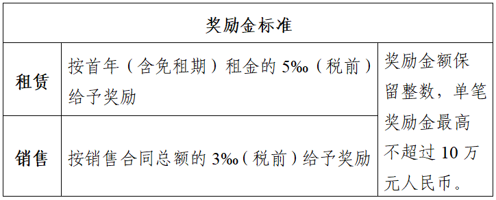 (二)租賃:租賃客戶簽署租賃合同,并付清租賃保證金及首年租金后,一次性兌現獎勵金。