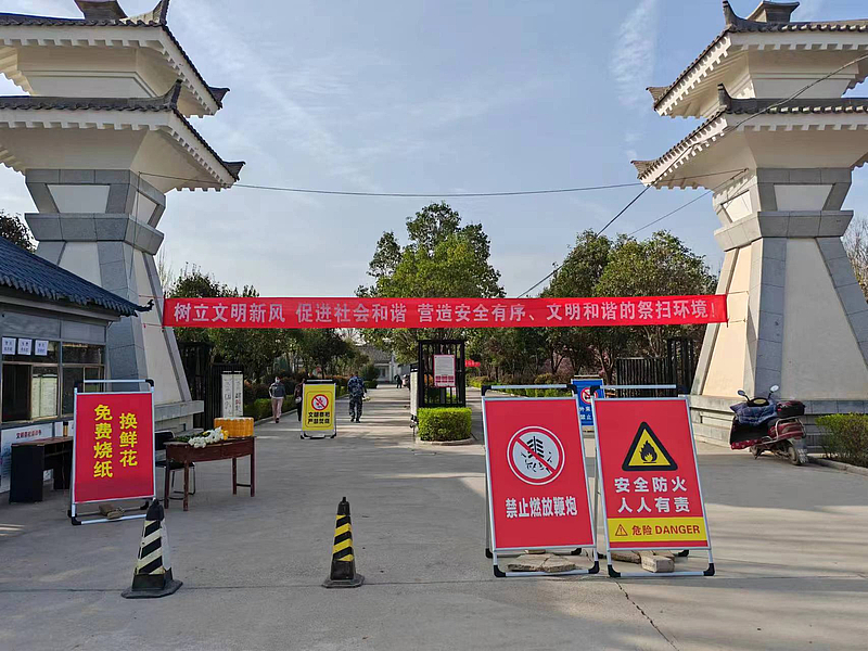 祭掃重于心而不拘于形。灃西服務積極開展節日氛圍營造、文明祭掃宣傳預熱工作,精心設計并提前制作了一系列宣傳物料,如醒目的橫幅、精美的展板等,分布放在園區入口、主干道、重要祭掃區域等顯著位置,并在園區內特設“綠色服務站”,提供免費的鮮花、追思卡片等綠色祭品,引導祭祀群眾摒棄傳統祭祀陋習,自覺做文明祭祀的倡導者、踐行者。