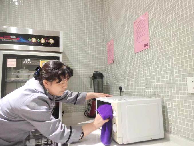 唯有熱愛工作,才能將工作做好、做精。作為一名保潔,張美玲沒有驚天動地的偉業,沒有轟轟烈烈的壯舉,只有那堅定的身影,用心清掃著園區每一個臺階、每一個角落,用情擦拭著每一塊玻璃、每一個窗臺,用責任清理著每一塊“牛皮癬”,每一桶垃圾。2021年11月,張美玲在清理裝修樓層過程中接觸到不明裝修物料,導致全身皮膚紅腫痛癢,她默默承受著身體的不適,堅持上崗,直到班長巡查工作時發現她脖子處的異樣,她不想讓別人擔心,反而寬慰起別人笑著說道:“么事么事,我回去涂點藥過兩天就好了”。在日常工作中,張美玲每天穿梭在樓層各辦公室進行衛生清潔,把本職工作做好后,也會主動幫助其她同事。她積極向上、熱愛工作的精神感染著身邊的每一個人。
