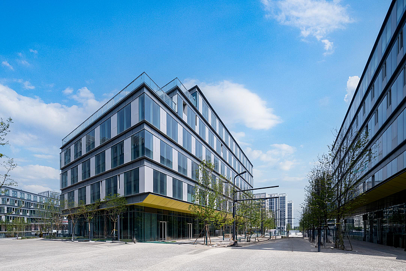 4單元位于秦創原生態科創島中央綠軸東側,占地面積118.4畝,總建筑面積21.67萬㎡(地上建面13.84萬㎡,地下建面7.83萬㎡,車位數量1594個),是集研發辦公、創客中心、休閑體育等功能為一體的國際人才創新基地。其中B、C地塊結合景觀融入特色辦公、企業展廳等內容;D、E地塊將特色商業與休閑體育結合,為辦公園區注入源源不斷的活力。