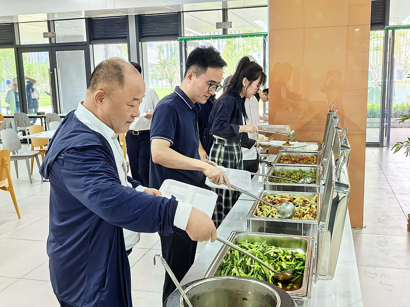 菜品上融合了南北風味,既有北方的面食、燉菜,也有南方的小炒、湯品,能滿足不同員工的口味偏好。試營業當天,首批用餐的園區員工對餐廳的菜品口感、分量及就餐環境都給出了一致好評,大家紛紛表示 “以后在園區就能吃好,既方便又健康”。