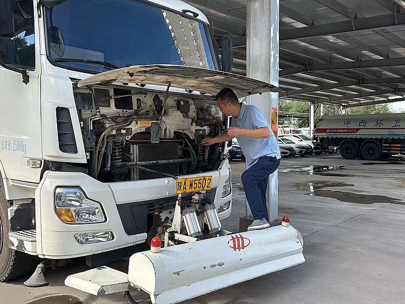 特專技駕駛員每天定時檢查車輛、對部分故障進行自主維修,確保洗掃車、灑水車等設(shè)備正常運轉(zhuǎn),對核心區(qū)域的灑水作業(yè)頻次也相應(yīng)增加,讓城市在機械的 “臂膀” 下保持清爽。