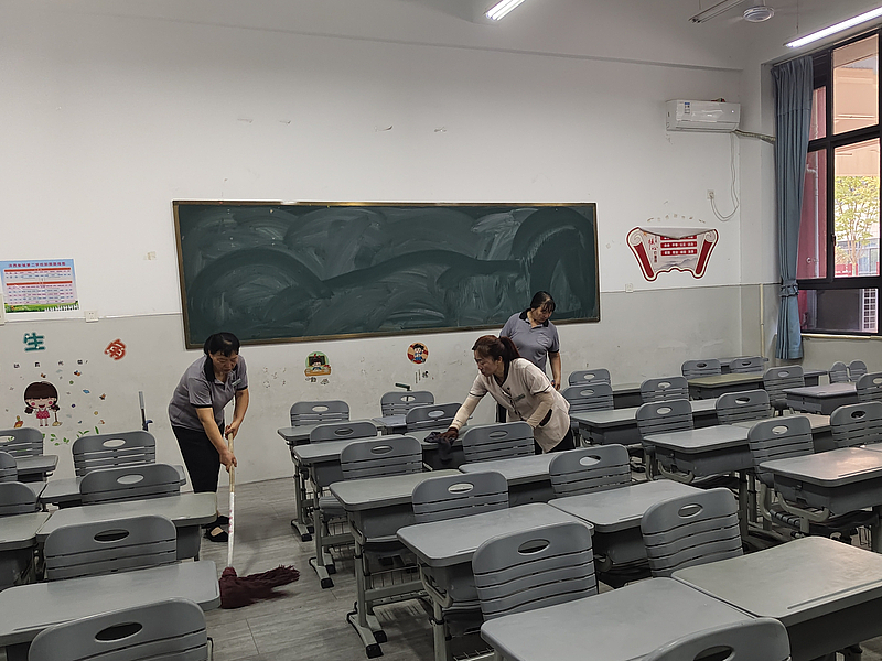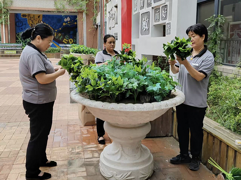 從教學樓到宿舍樓,從主干道到操場,灃西服務嚴格執行標準化作業流程,開展全覆蓋深度清潔,并對衛生間、教室等重點區域進行徹底消殺,確保校園環境健康安全。同時積極配合校方開展綠植養護與景觀煥新工作,以盎然綠意和清新面貌迎接師生歸來。
