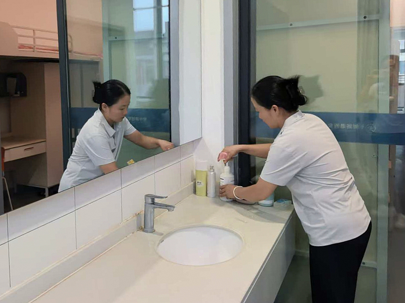 水電正常、設施齊全……這些看似平凡的日常,背后是物業工作者無數次的仔細排查檢修。開學前夕,灃西服務統籌推進基礎設施檢修與提升,全面完成各樓宇空調、水電、門窗、桌椅等設施維修保養,并對配電室、水泵房等關鍵設備間進行系統排查,確保滅火器、消火栓等設備完好有效,及時消除安全隱患,保障各類設施在新學期安全、穩定、高效運行。宿舍管理員也同步行動,逐間查驗宿舍水電、家具設備,實時跟進維修整改進度,并開展宿舍清潔與布置,提前通風換氣,讓返校的學子推開門就能感受到“家”的溫馨。