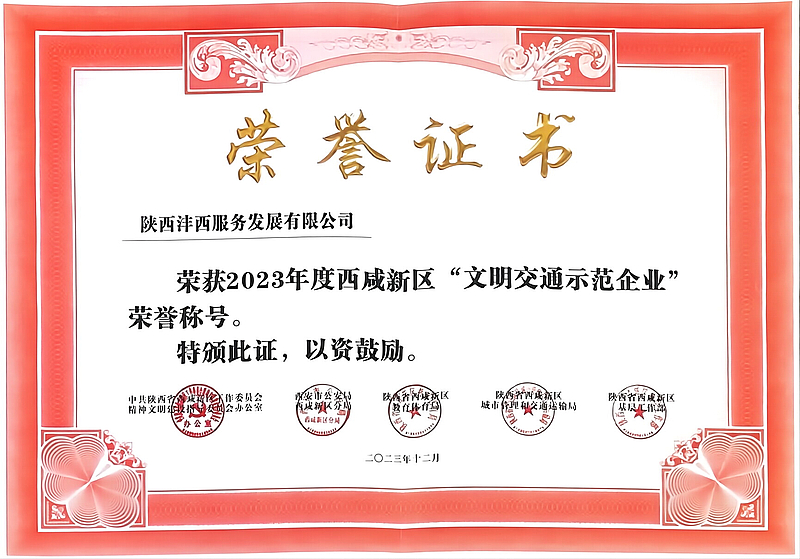 近日,西咸新區(qū)黨工委文明辦、市公安局西咸新區(qū)分局、西咸新區(qū)教育體育局、西咸新區(qū)城市管理和交通運(yùn)輸局、西咸新區(qū)基層工作部等部門在全區(qū)聯(lián)合開展“文明交通示范集體和先進(jìn)個(gè)人”創(chuàng)建評(píng)選活動(dòng)。經(jīng)評(píng)審,灃西集團(tuán)服務(wù)公司榮獲2023年度西咸新區(qū)“文明交通示范企業(yè)”榮譽(yù)稱號(hào)。