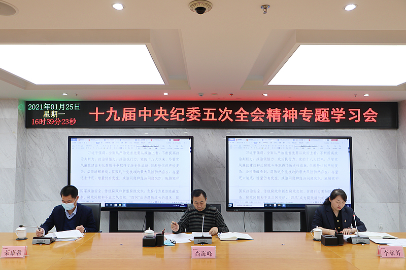 會議學(xué)習(xí)了習(xí)近平總書記在十九屆中央紀(jì)委五次全會上的重要講話、十九屆中央紀(jì)委五次全會公報,傳達(dá)了省紀(jì)委監(jiān)委關(guān)于全省紀(jì)檢監(jiān)察機關(guān)強化監(jiān)督保障疫情防控工作的安排部署及新城疫情防控“五個全覆蓋”工作實施方案,研究部署了近期工作。
