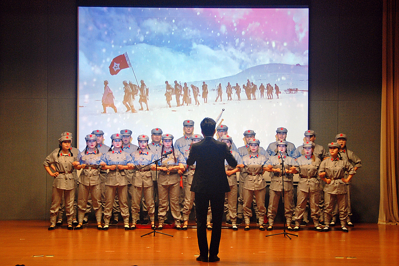 活動在陜西建工第六建設(shè)集團(tuán)公司帶來的大合唱《飛躍大渡河》《在希望的田野上》旋律中拉開序幕,財務(wù)部帶來的詩歌朗誦《有一頁歷史》讓人不忘初心、斗志昂揚(yáng),來自公司設(shè)計部及逸心公司帶來的情景劇《生命的顏色》渲染了整場氛圍。