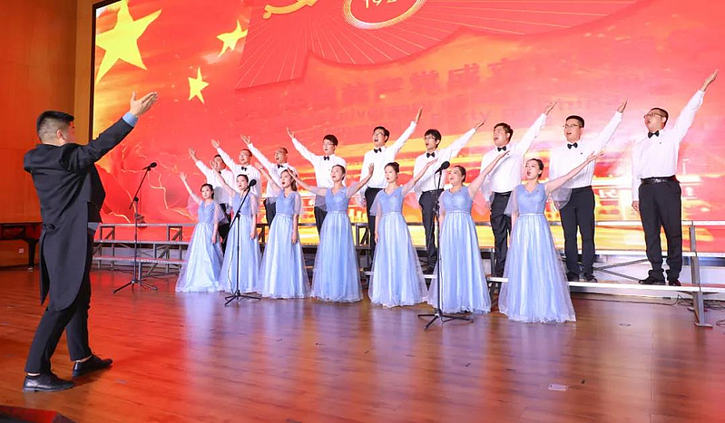一首紅歌就是一段歷史。“從小爺爺對我說,吃水不忘挖井人,曾經(jīng)苦難才明白,沒有共產(chǎn)黨哪有新中國……”《在燦爛的陽光下》《沒有共產(chǎn)黨就沒有新中國》《飛越大渡河》《南泥灣》等歌曲紛紛唱響,激昂的音律,帶領(lǐng)大家回顧黨的光輝歷史,謳歌黨的豐功偉績,展現(xiàn)中國共產(chǎn)黨為人民謀幸福,為中華民族謀復(fù)興的初心與使命。