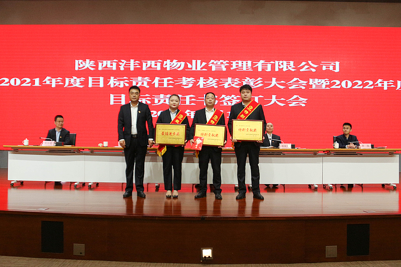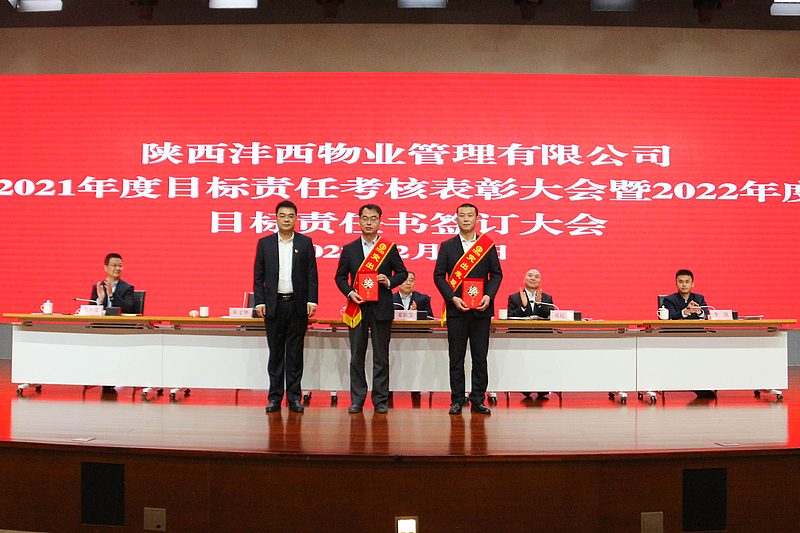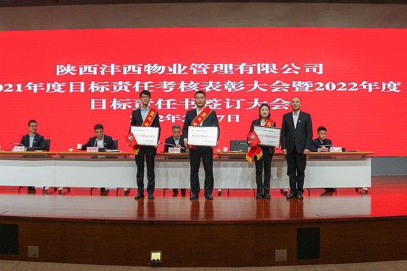 會議表彰了2021年度表現突出的先進集體和個人,簽訂了2022年度目標責任書、黨風廉政建設目標責任書和安全目標責任書,相關部門、人員作了交流發言。物業公司主要負責人從經營發展、服務保障、品質管控等六個方面系統回顧了過去一年的業績成果,對照“聚焦核心競爭力,塑造灃西物業品牌基礎”目標任務,全面部署了2022年整體工作。