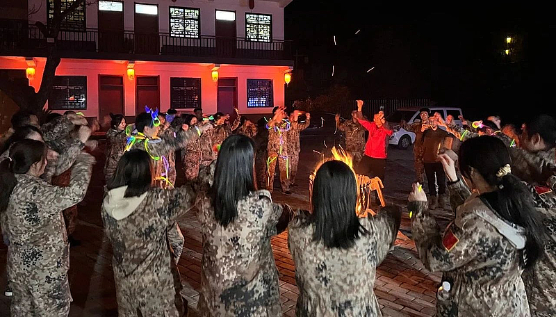當夜幕降臨,大家團團圍坐在一起,繼續進行一輪又一輪的精彩拓展活動,最后的篝火晚會更是把歡快的氣氛推上頂點,學員們紛紛展現出了不同于工作狀態下的另一面,歌唱聲、吶喊聲、尖叫聲...此起彼伏,歡樂的舞蹈、動感的音樂High翻全場。