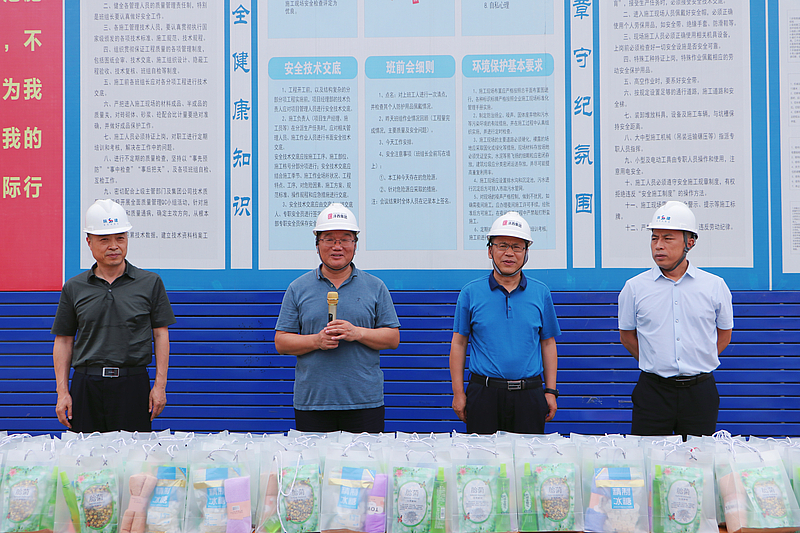 7月26日下午,灃西集團黨委書記、董事長楊建柱,總經(jīng)理郭廷喜帶隊赴在建項目現(xiàn)場開展夏季“送清涼”慰問活動,副總經(jīng)理秦繼紅、張桂林參加。