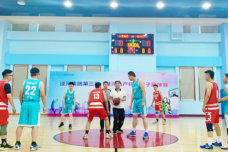 隨著裁判的哨聲響起,比賽揭幕戰在灃西集團和涇河地產之間打響。運動員們矯健的身影在球場上不斷穿梭,突破和防守輪番開展,運球、傳球、跳投,一個個靈巧的轉身和精彩的投籃,贏得現場觀眾陣陣喝彩。