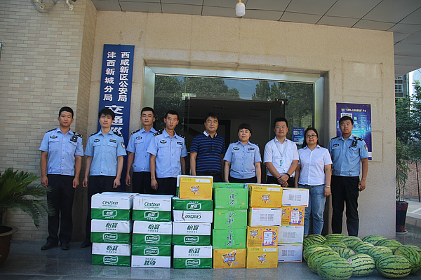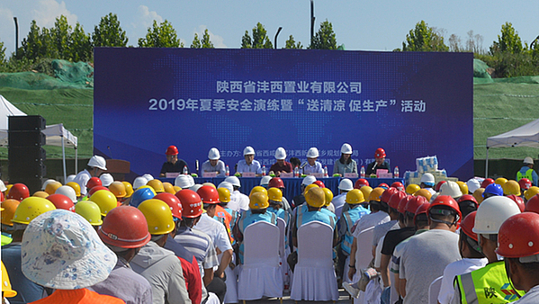 7月31日,置業(yè)公司開展2019年夏季安全演練暨“送清涼 促生產(chǎn)”活動,為奮戰(zhàn)在高溫一線的施工人員送去西瓜、綠豆、白糖、藿香正氣水等防暑降溫慰問品。新城規(guī)劃建設(shè)局副局長呂健、集團(tuán)公司紀(jì)委書記尚海峰、置業(yè)公司董事長葛上義以及施工及監(jiān)理單位主要負(fù)責(zé)同志參加本次活動。