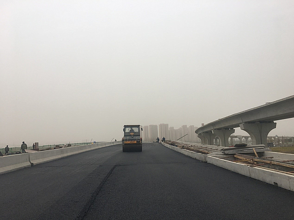 11月30日,在經歷了15天24小時連續搶工作業后,天元路(咸戶路-新港橋)及新港橋兩個項目先后完成了瀝青路面鋪設及銜接工作,達到通車條件。