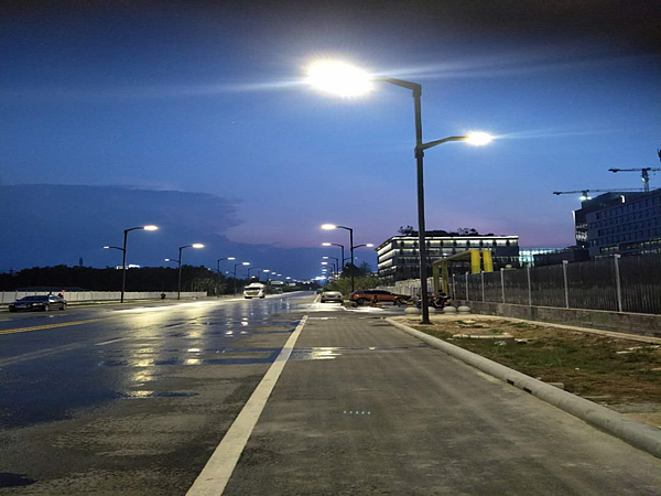 經過為期一個月的材料采購、基礎施工、路燈吊裝等工序實施,7月26日晚,同德路及尚業路連接段約600m范圍路燈完成最后的調試驗收工作,正式點亮投入使用。