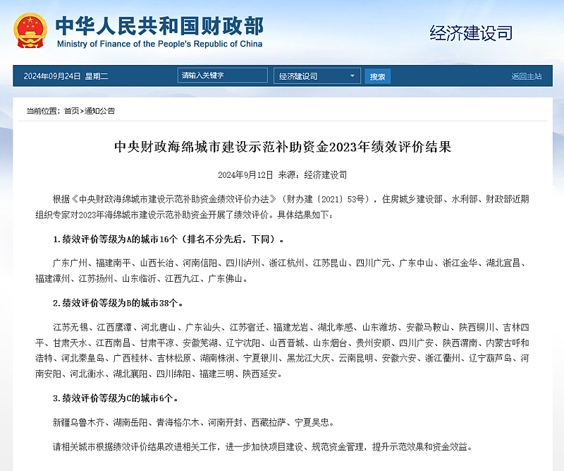 近期,《中央財政海綿城市建設示范補助資金2023年績效評價結果》公布,由灃西集團子公司——西咸海綿城市參與服務的三座國家海綿城市示范城市——山西省長治市、四川省廣元市及陜西省銅川市均在績效評價中取得佳績,其中長治市與廣元市均獲評A檔,銅川市獲評B檔且穩居西北地區首位。