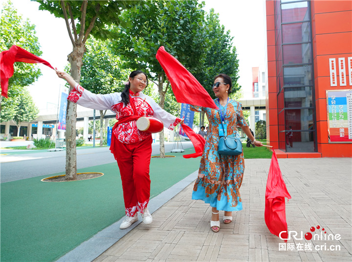 隨后,極具陜西特色的腰鼓表演又讓駐華大使夫人們眼前一亮。孩子們颯颯的身姿,紅紅綢帶舞得虎虎生風(fēng)。伴隨著鏗鏘有力的鼓點(diǎn),駐華大使夫人們也跟著打起拍子,各個(gè)躍躍欲試,拿起鼓槌敲起腰鼓。