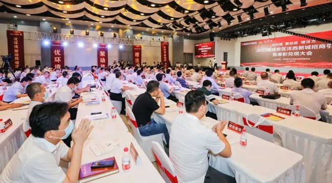 2022年6月23日,以“優環境 聚動能 增活力”為主題的2022西咸新區灃西新城招商引資暨表彰兌現大會在灃西新城總部經濟園國際會議廳舉行?,F場向89家入區企業、7名高層次人才兌現資金總額1.83億元。本次大會以實實在在的“真金白銀”,展示灃西新城在扶持企業、壯大產業、穩住經濟等方面的決心和力度,打造最有溫度的營商環境,吸引更多的優質企業、項目、人才投身灃西、創業灃西。