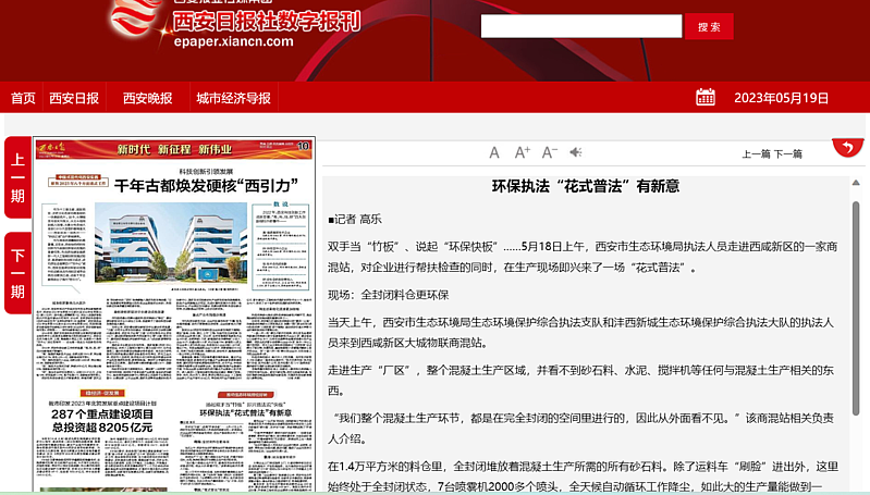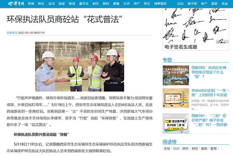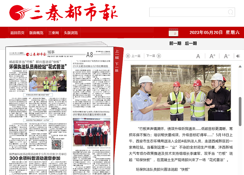 “竹板聲聲情滿懷,績效升級聽我道來……低碳目標更清晰,常抓環保不懈力;培訓幫扶要成效,升級目標盯得牢……”5月18日上午,西安市生態環境局送法入企的4名執法人員,走進西咸新區的一家商砼站。當看到這里一“塵”不染的全封閉生產場景,灃西新城大氣專項辦政策推進及技術支持組組長李建軍,雙手當“竹板”說起“環保快板”,在混凝土生產現場即興來了一場“花式普法”。