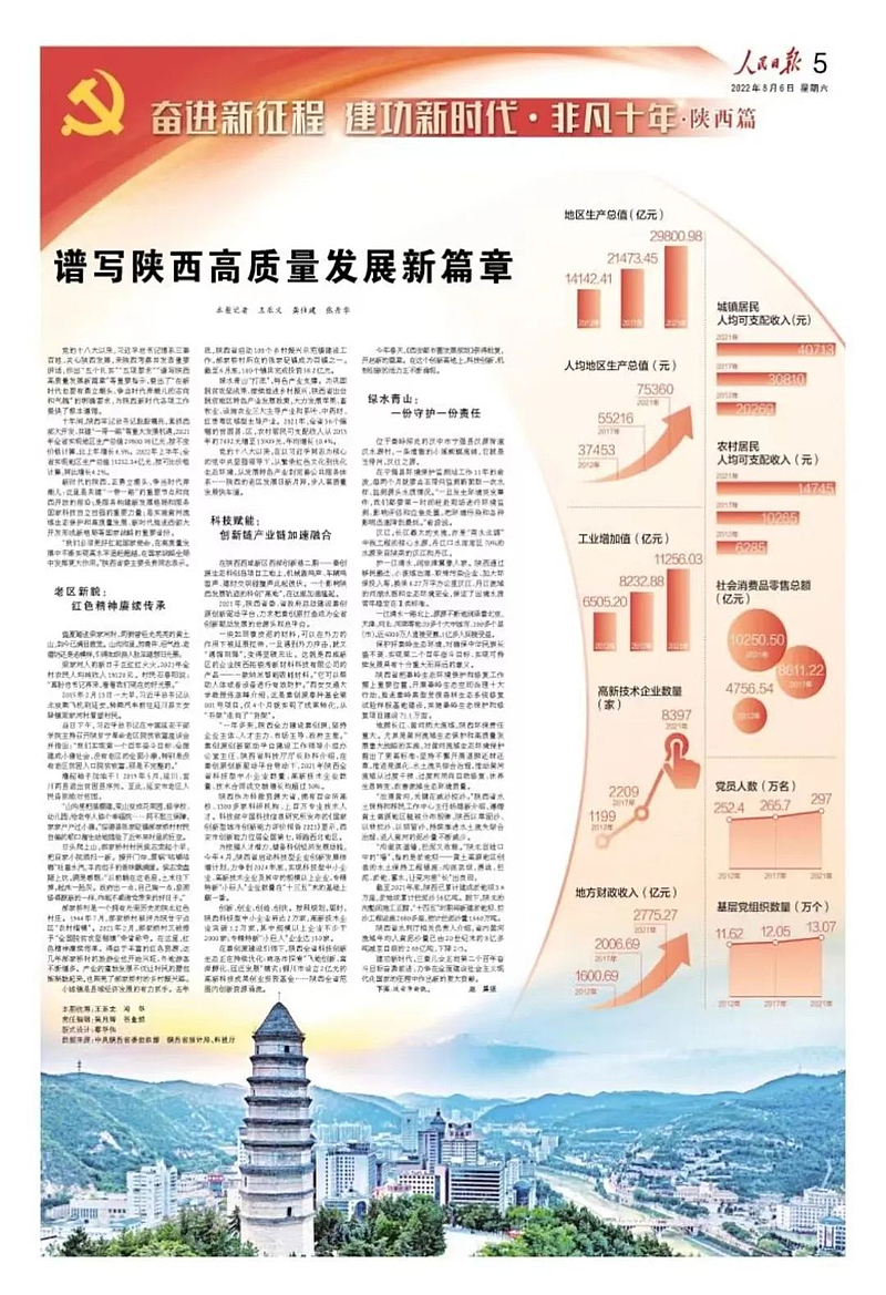 8月6日,人民日報刊發主題報道《奮進新征程建功新時代·非凡十年》。聚焦陜西,緊抓西部大開發、共建“一帶一路”等重大發展機遇,在高質量發展中不斷實現高水平追趕超越。2021年,陜西省委、省政府啟動建設秦創原創新驅動平臺,力求把秦創原打造成為全省創新驅動發展的總源頭和總平臺。(人民日報記者王樂文龔仕建張丹華)原標題:《人民日報聚焦!
