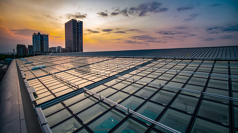 光伏發電系統通過對游泳館進行陰影分析,確定建筑與光伏創新融合方案,在游泳館屋頂敷設高效光伏模塊4200平方米,實現年發電量約63萬千瓦時,比常規光伏系統發電能力提升30%以上。